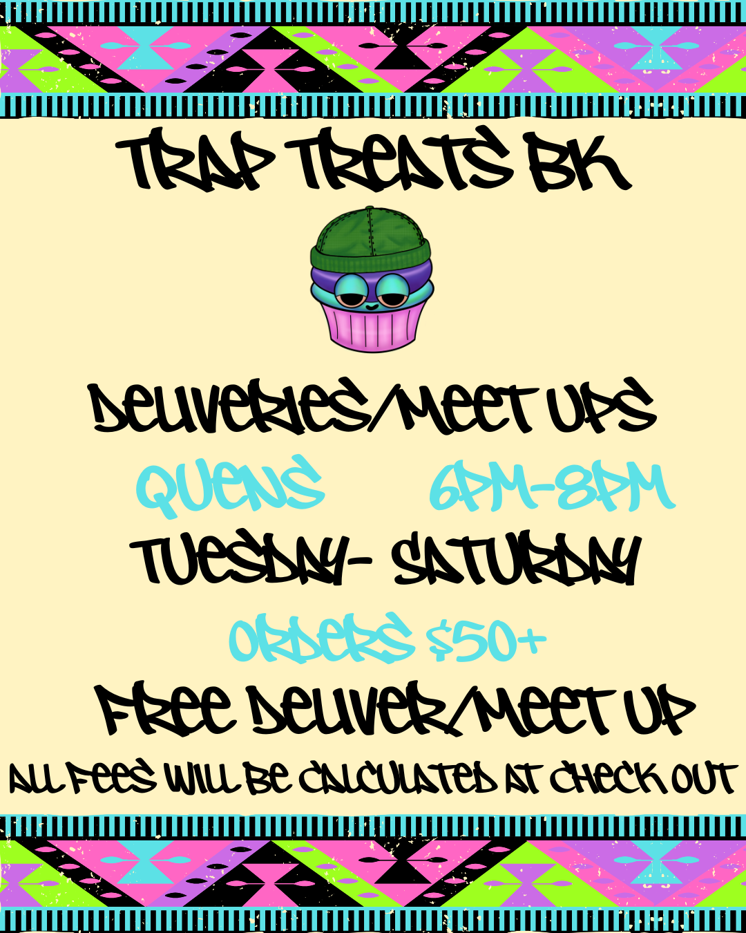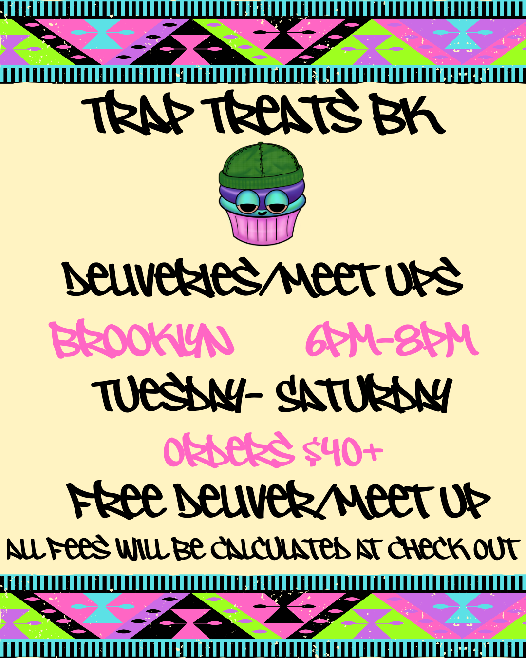 Trap Treats BK is a Black Owned company specializing in treats to help the body and the mind. We are based in Brooklyn NY but aren't limited to NYC